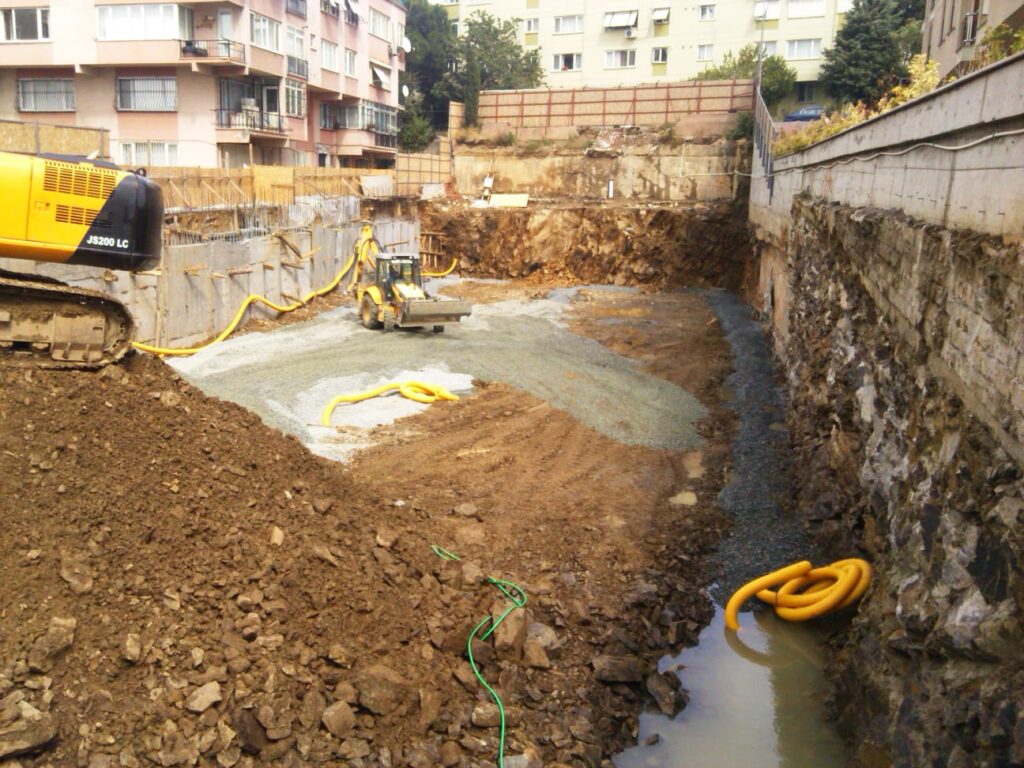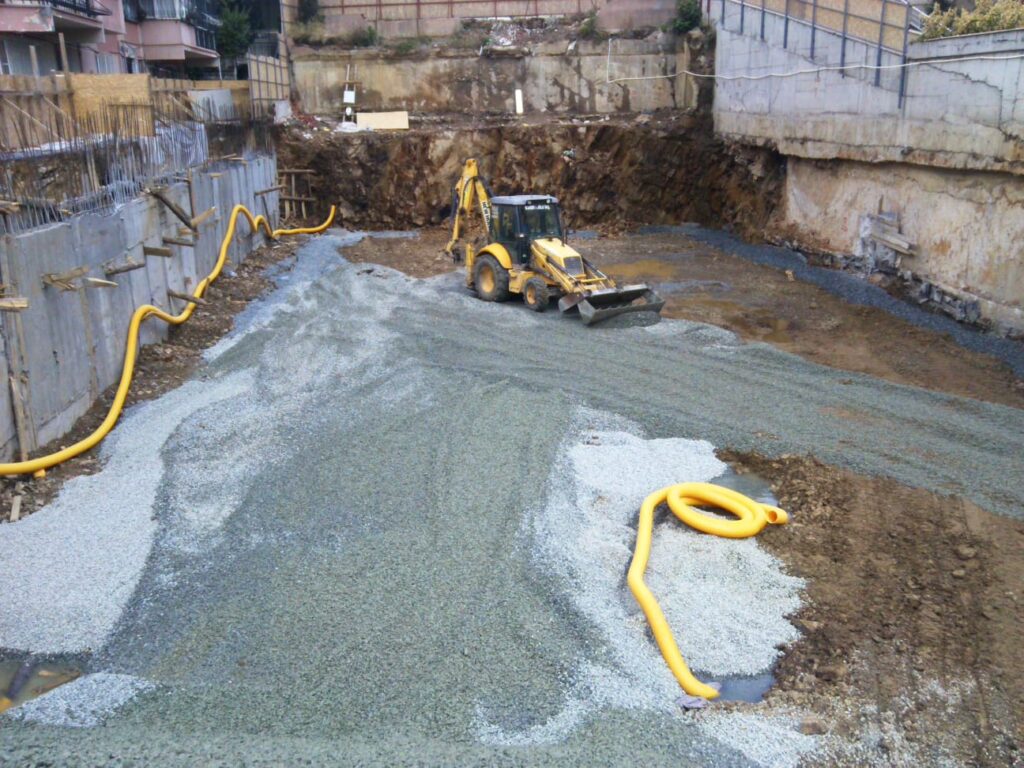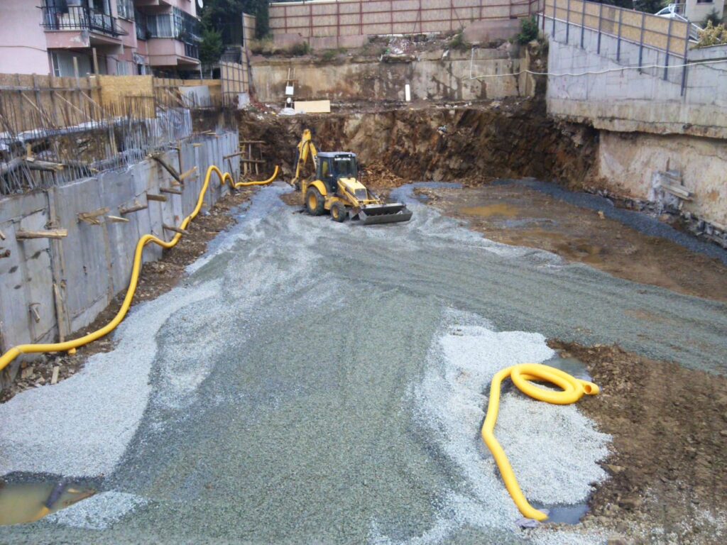 Drenaj uygulaması özellikle temel ve bodrum katlarda binaya çarpan suyu yapıdan uzak tutar ve basıncını azaltır. Sağlıklı bir drenaj sistemi yapabilmek için bina temel kotuna ulaşmak gerekir. Bu kapsamda temel seviyeden daha derine inilmelidir.